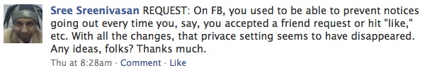 Though Facebook founder Mark Zuckerberg says that public is the new “social norm,” many members who use the social network for professional and business reasons have lost the ability to conduct certain actions privately as a result of changes made to the settings.